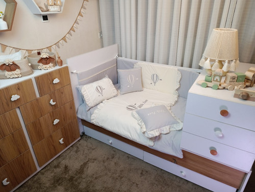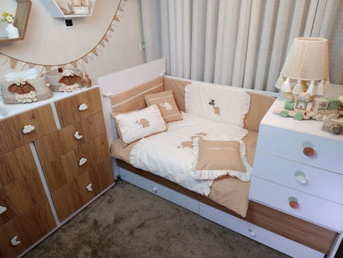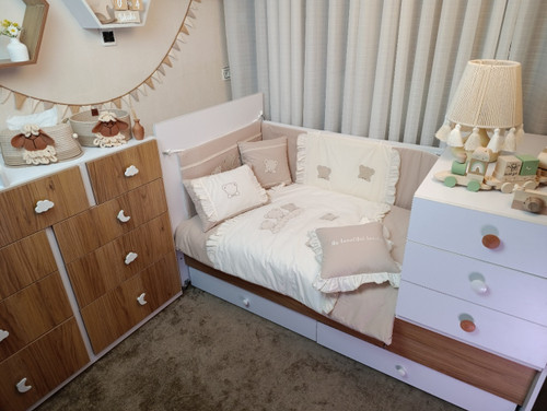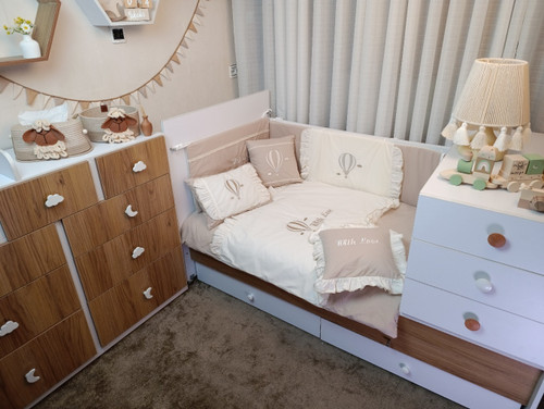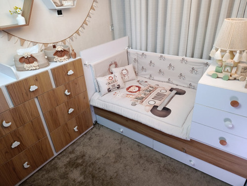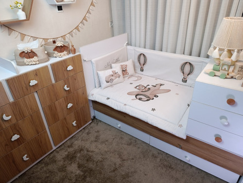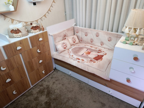 با سایدا دیگر نگران چیدمان اتاق نخواهید بود. روتختی، آغوشی، لوستر، آباژور و آویز موزیکال — همه چیز هماهنگ و آماده است تا اتاقی زیبا و امن برای کوچولوی شما بسازیم.