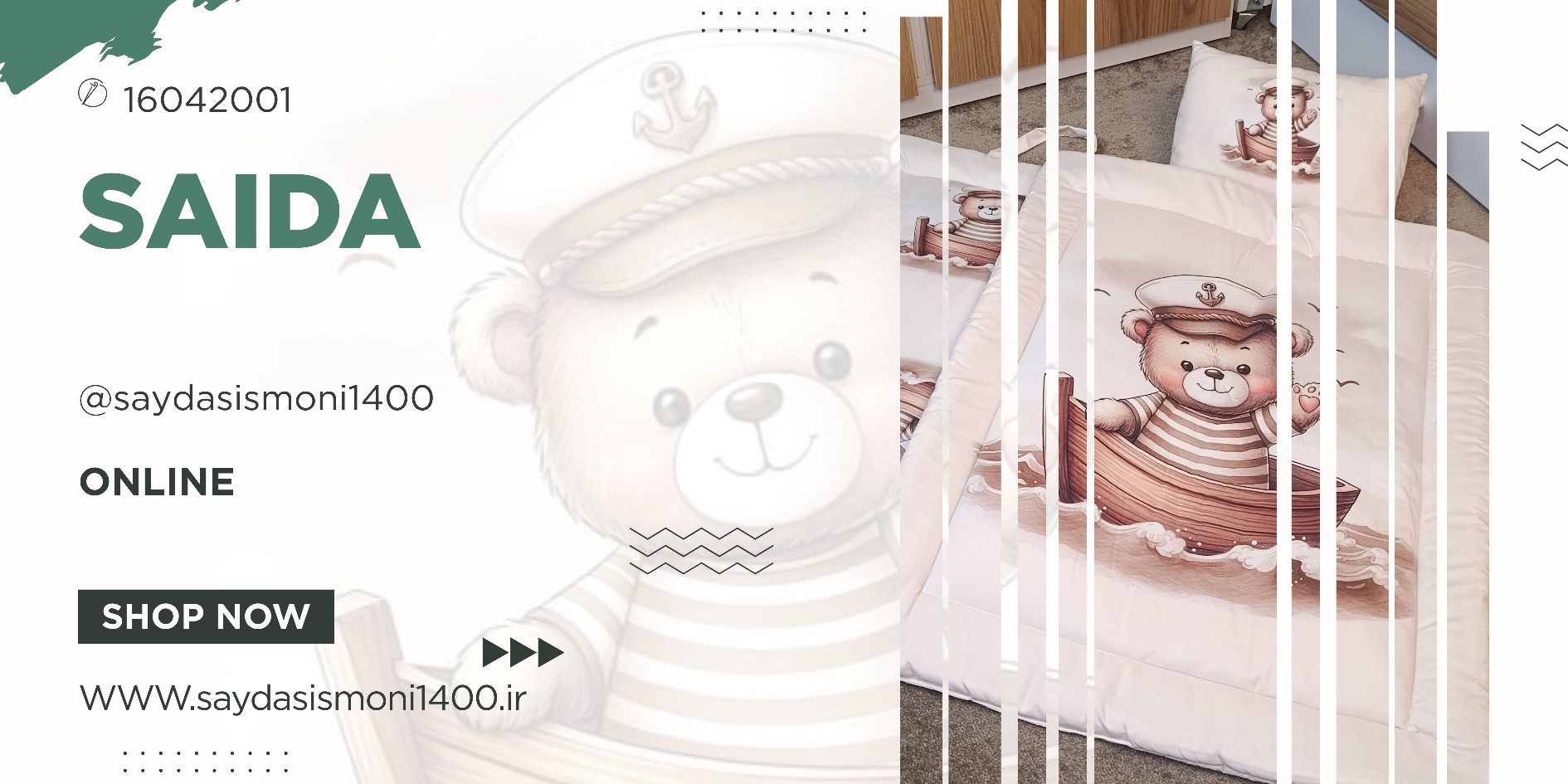 تمام طرحها توسط تیم ما طراحی میشوند و شما میتوانید سفارش اختصاصی بدهید، حتی با چاپ اسم کوچولوی عزیزتان روی سرویس خواب.