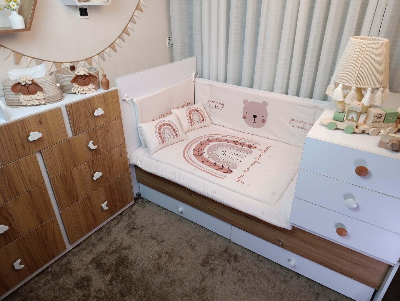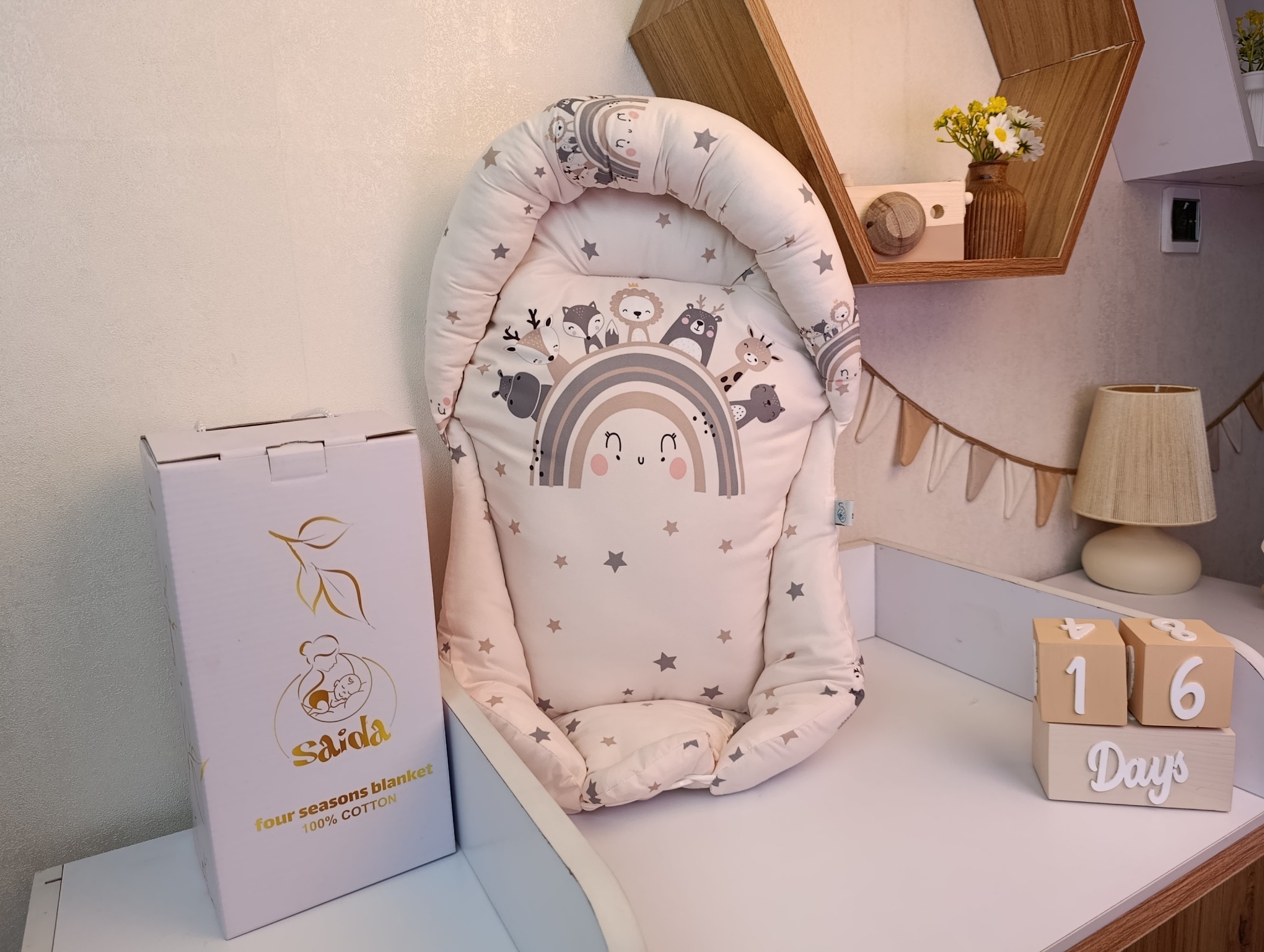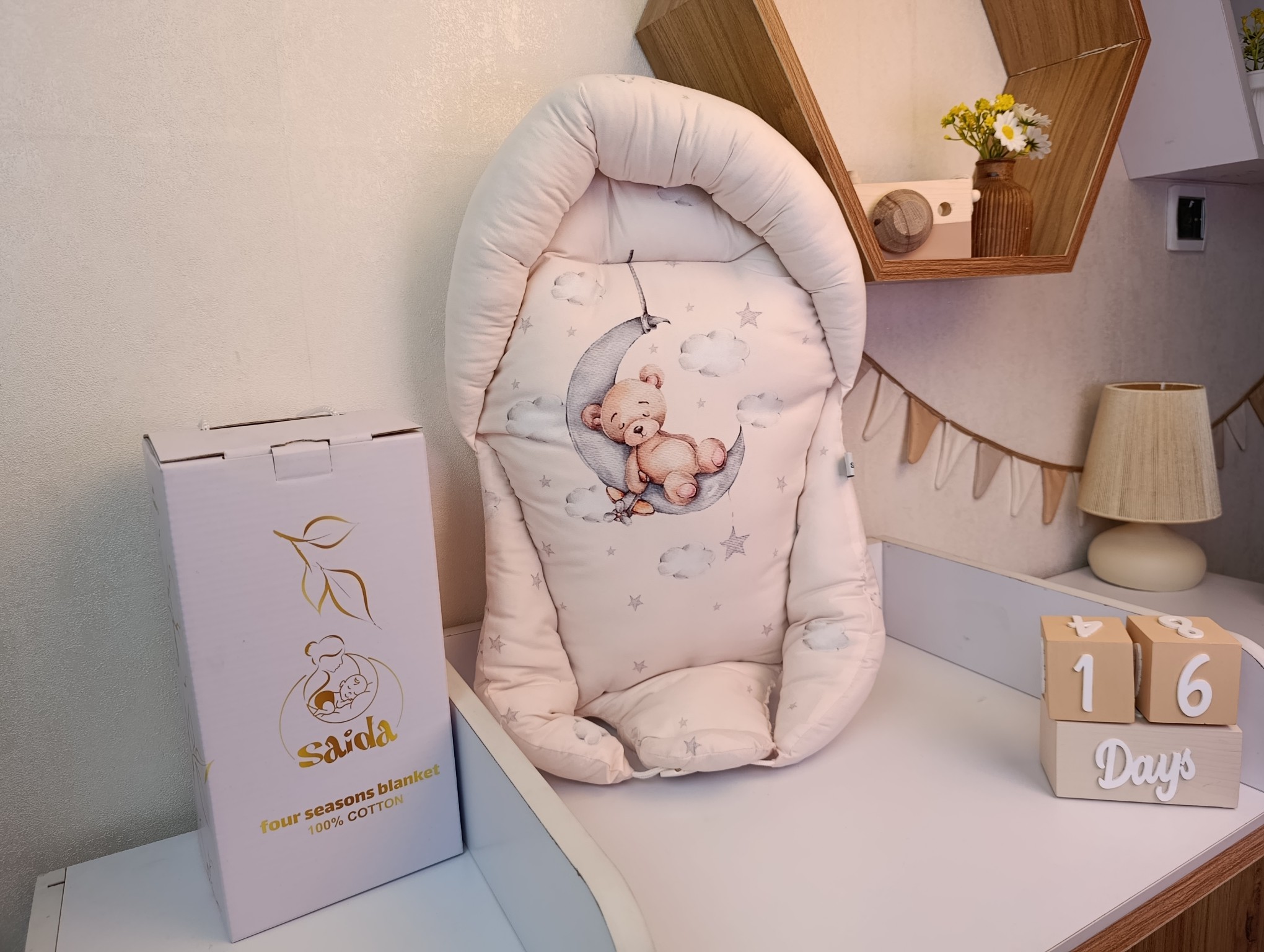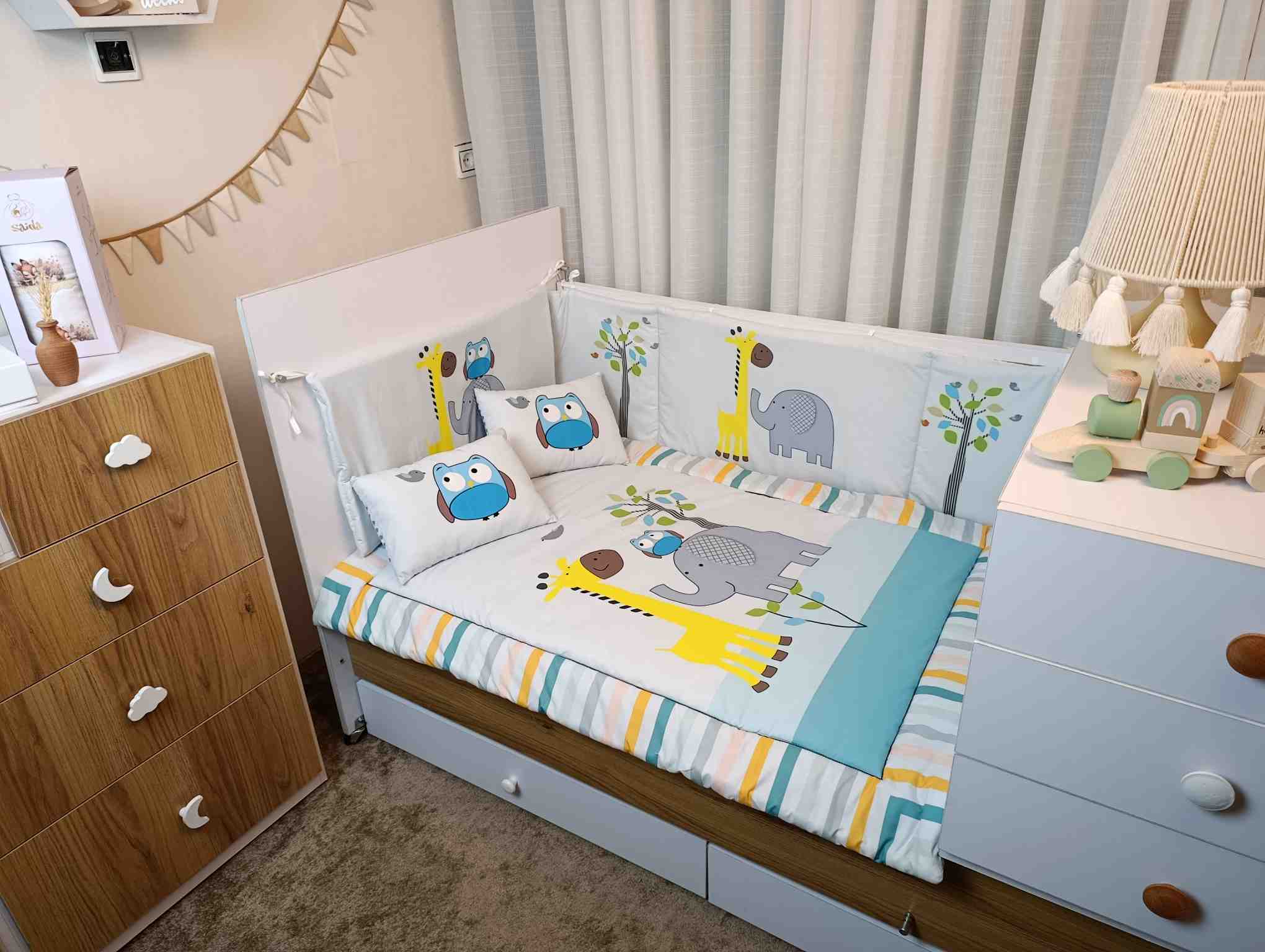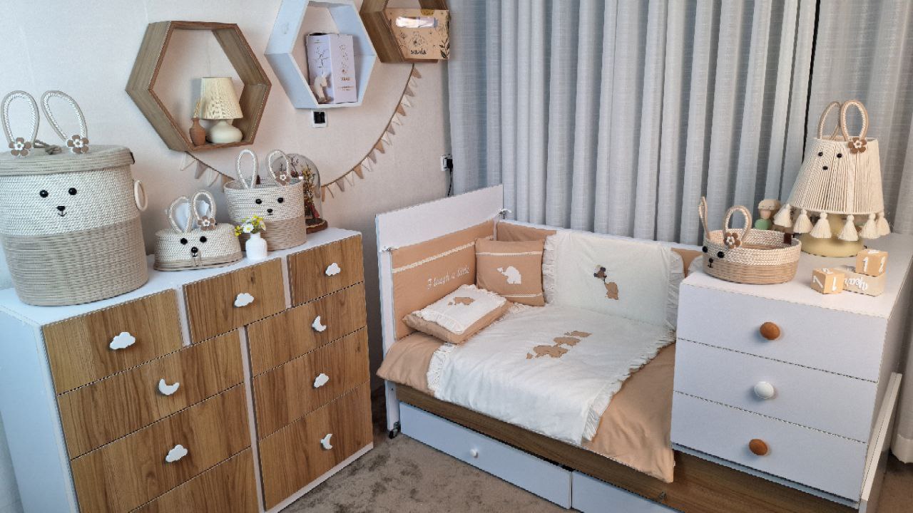 با سایدا دیگر نگران چیدمان اتاق نخواهید بود. روتختی، آغوشی، لوستر، آباژور و آویز موزیکال — همه چیز هماهنگ و آماده است تا اتاقی زیبا و امن برای کوچولوی شما بسازیم.
