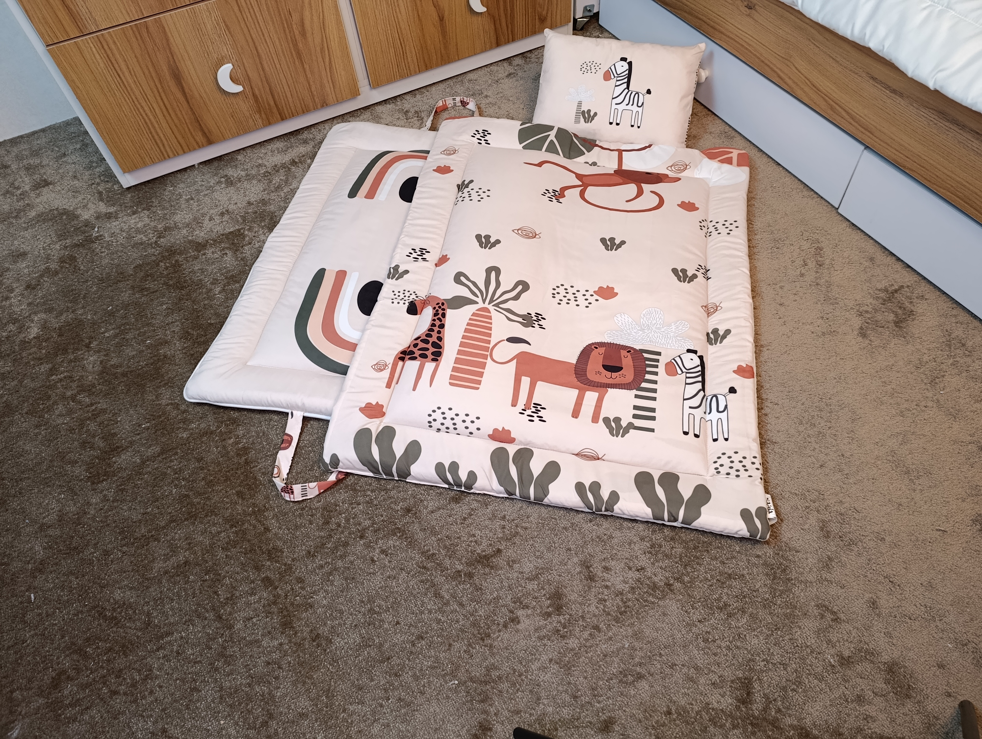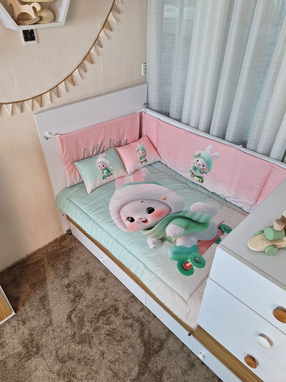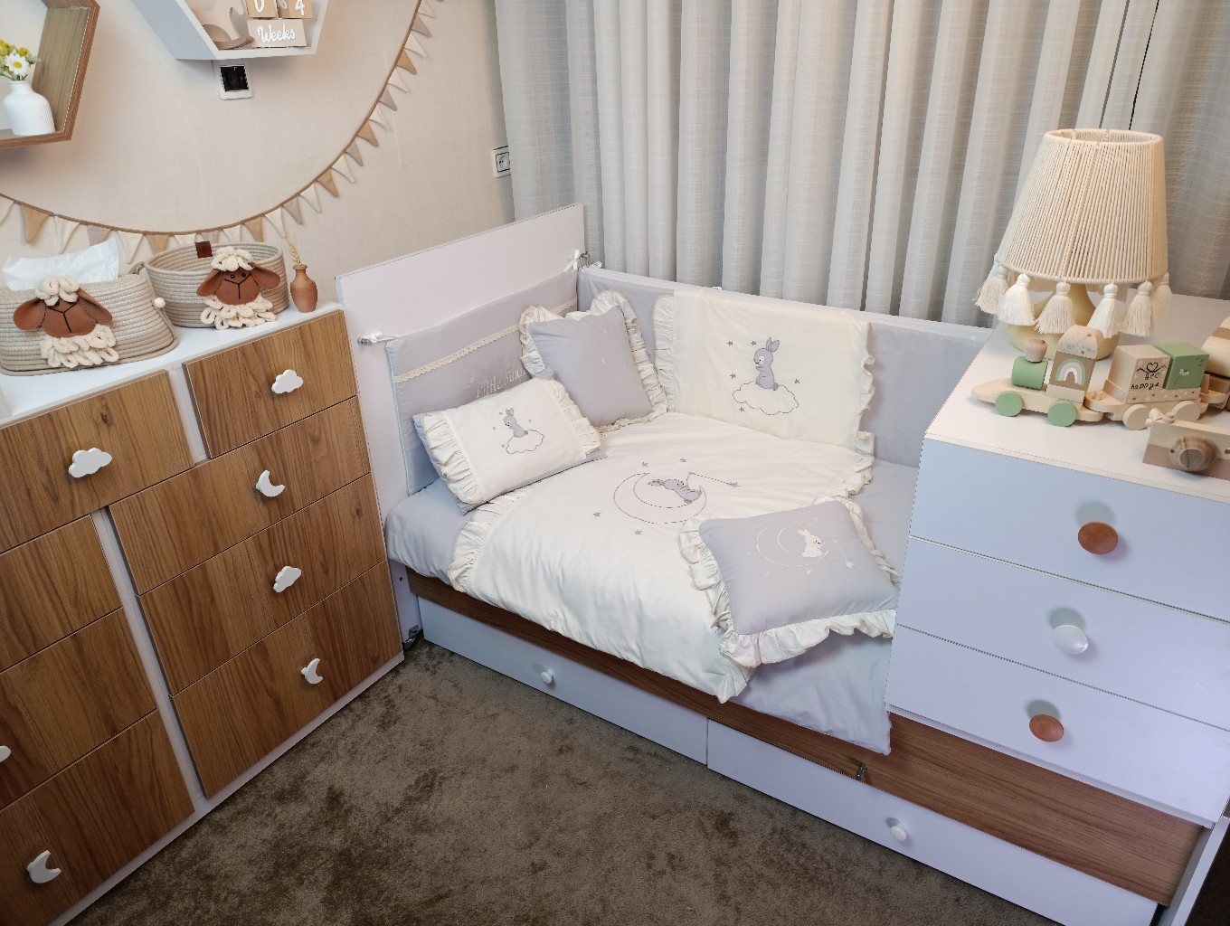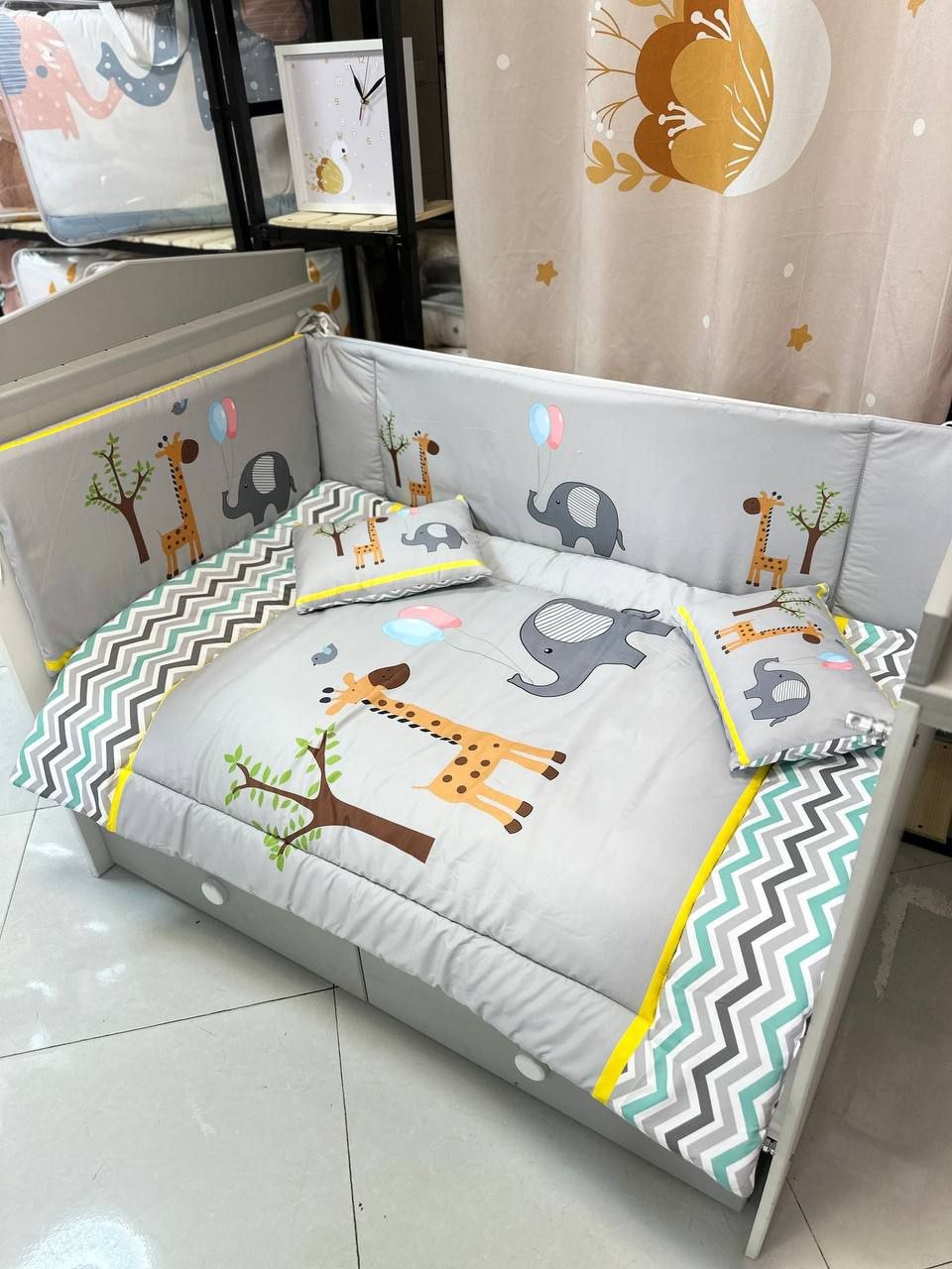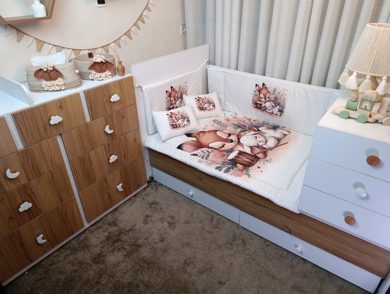 با سایدا دیگر نگران چیدمان اتاق نخواهید بود. روتختی، آغوشی، لوستر، آباژور و آویز موزیکال — همه چیز هماهنگ و آماده است تا اتاقی زیبا و امن برای کوچولوی شما بسازیم.