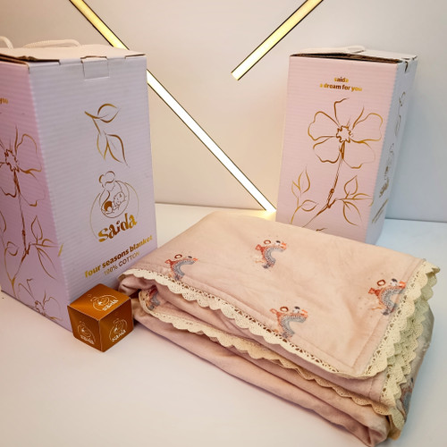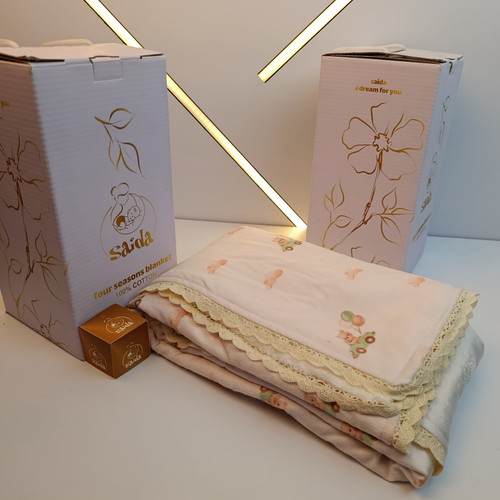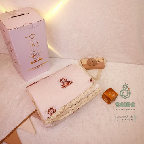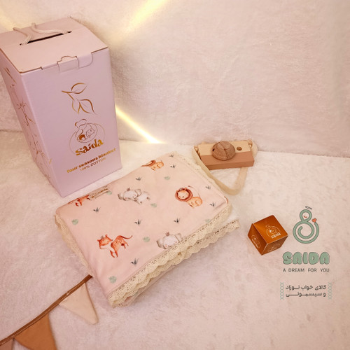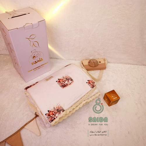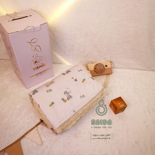 پتو رو انداز نوزاد با پارچه تمام نخ پنبه دوزی شده