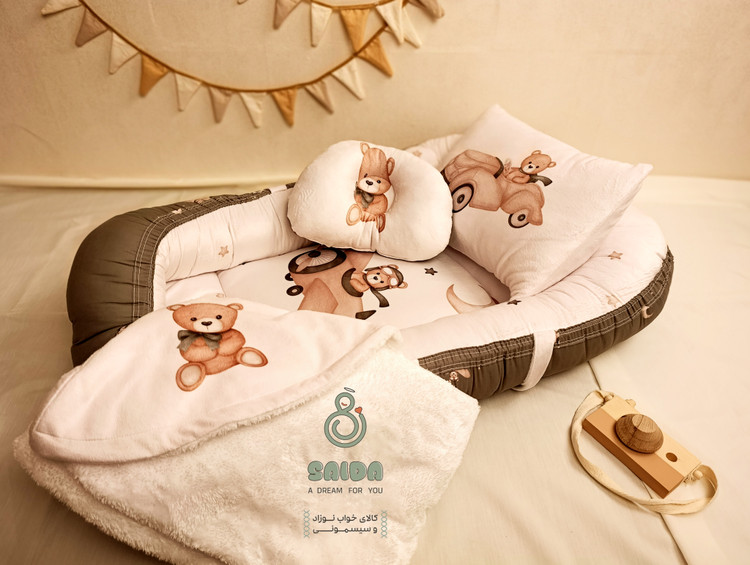 لبههای محافظ اطراف تشک، محیطی شبیه آغوش مادر ایجاد میکند و به ثابت ماندن وضعیت خواب نوزاد کمک میکند. بالشت فرمدهی نیز به حفظ حالت طبیعی سر نوزاد کمک کرده و پتو دورپیچ باعث گرم ماندن بدن کودک در هنگام استراحت میشود.