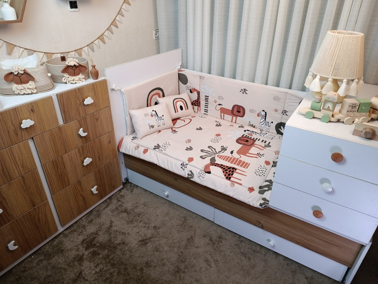 این سرویس با داشتن گاردهای محافظ، بالش و روبالشتی، لحاف و ملحفه، مجموعهای کامل برای راحتی، ایمنی و زیبایی تخت نوزاد فراهم میکند.