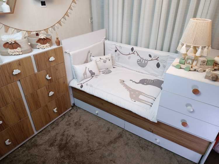 این سرویس با داشتن گاردهای محافظ، بالش و روبالشتی، لحاف و ملحفه، مجموعهای کامل برای راحتی، ایمنی و زیبایی تخت نوزاد فراهم میکند.