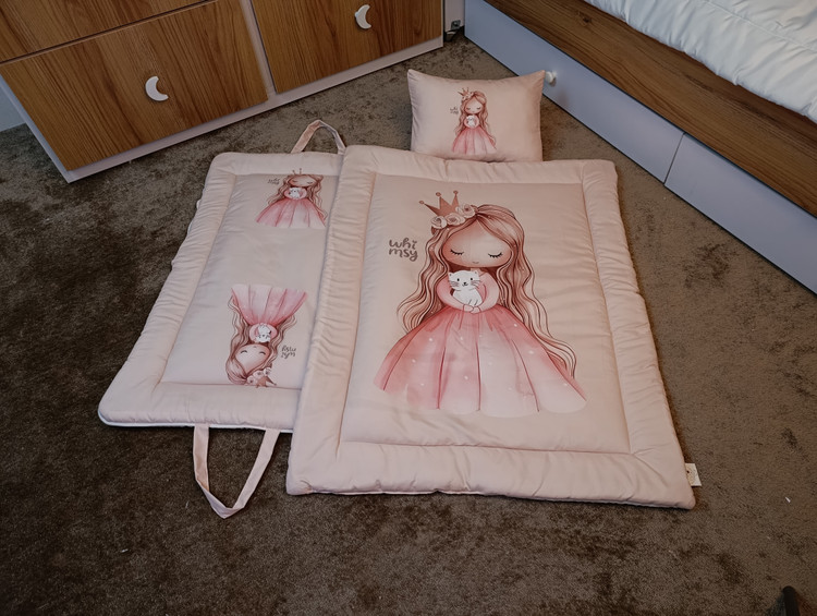 ست مسافرتی نوزاد سهتکه شامل تشک، بالش و لحاف/پتو طراحی شده تا والدین بتوانند کودک خود را در سفر، مهمانی یا خارج از خانه بهراحتی و با امنیت کامل بخوابانند.