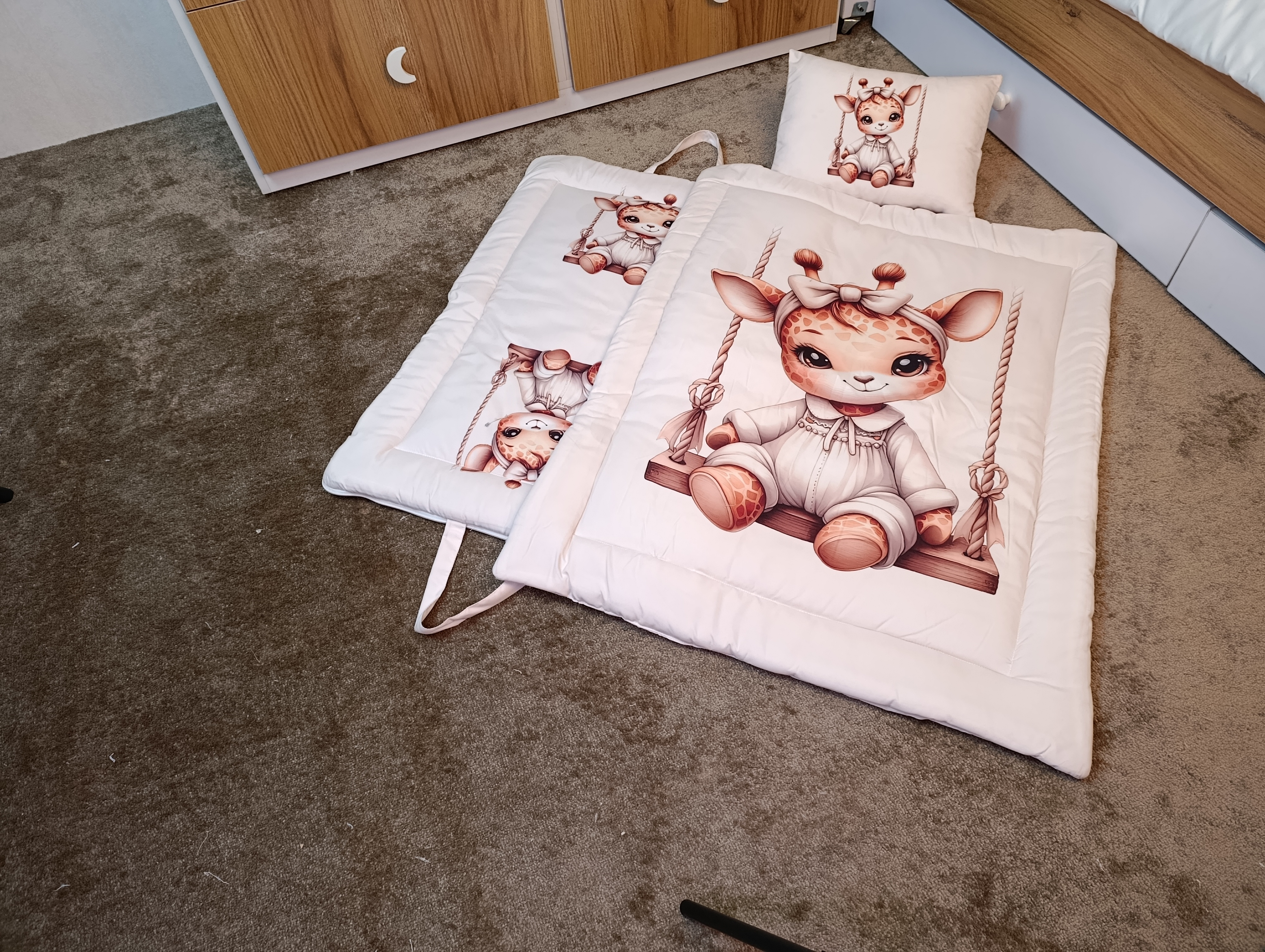 ست مسافرتی نوزاد سهتکه شامل تشک، بالش و لحاف/پتو طراحی شده تا والدین بتوانند کودک خود را در سفر، مهمانی یا خارج از خانه بهراحتی و با امنیت کامل بخوابانند.