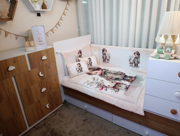 این سرویس با داشتن گاردهای محافظ، بالش و روبالشتی، لحاف و ملحفه، مجموعهای کامل برای راحتی، ایمنی و زیبایی تخت نوزاد فراهم میکند.