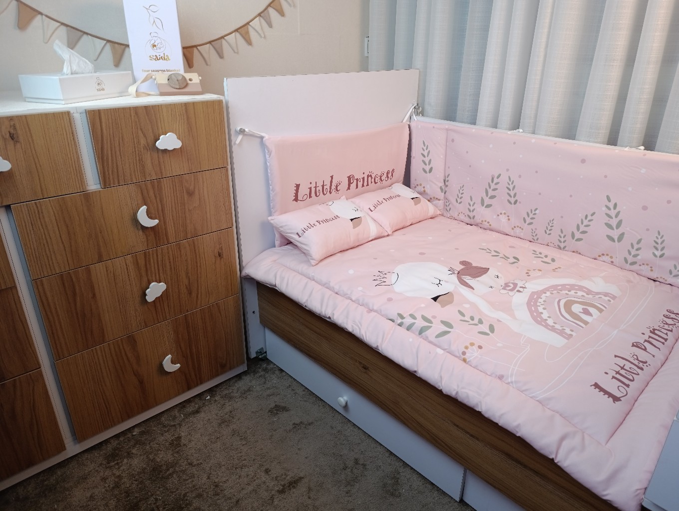 این سرویس با داشتن گاردهای محافظ، بالش و روبالشتی، لحاف و ملحفه، مجموعهای کامل برای راحتی، ایمنی و زیبایی تخت نوزاد فراهم میکند.