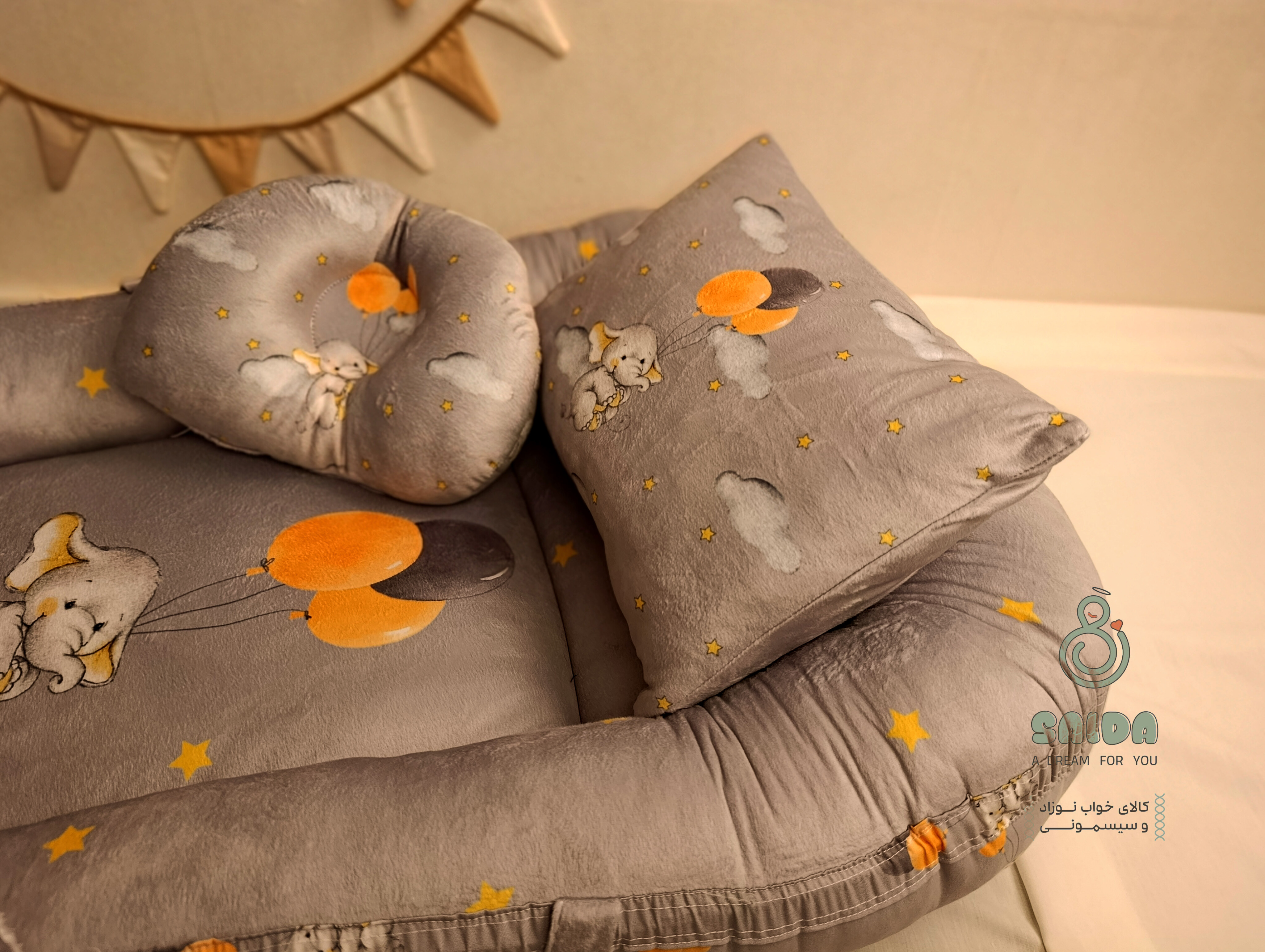 تشک گارددار نوزاد(غلط گیر) طرح فیل و بادکنک