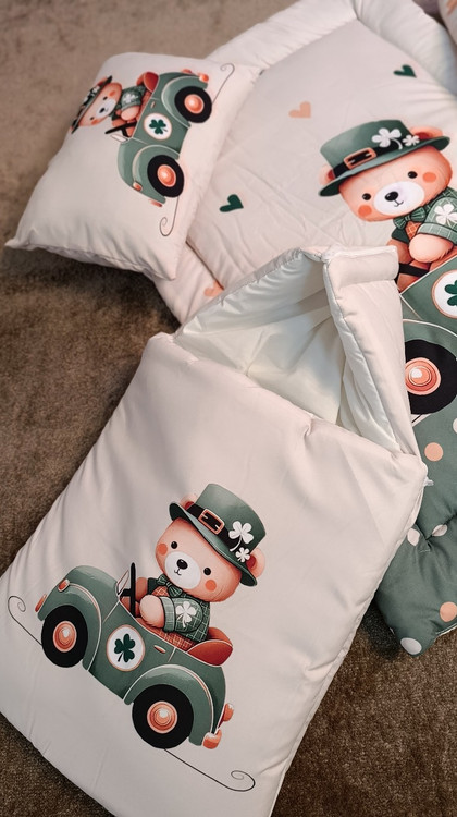 سرویس خواب نوزاد با قنداق فرنگی طرح خرس و ماشین