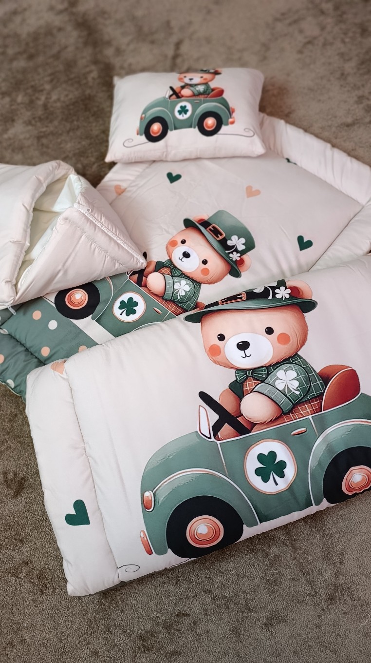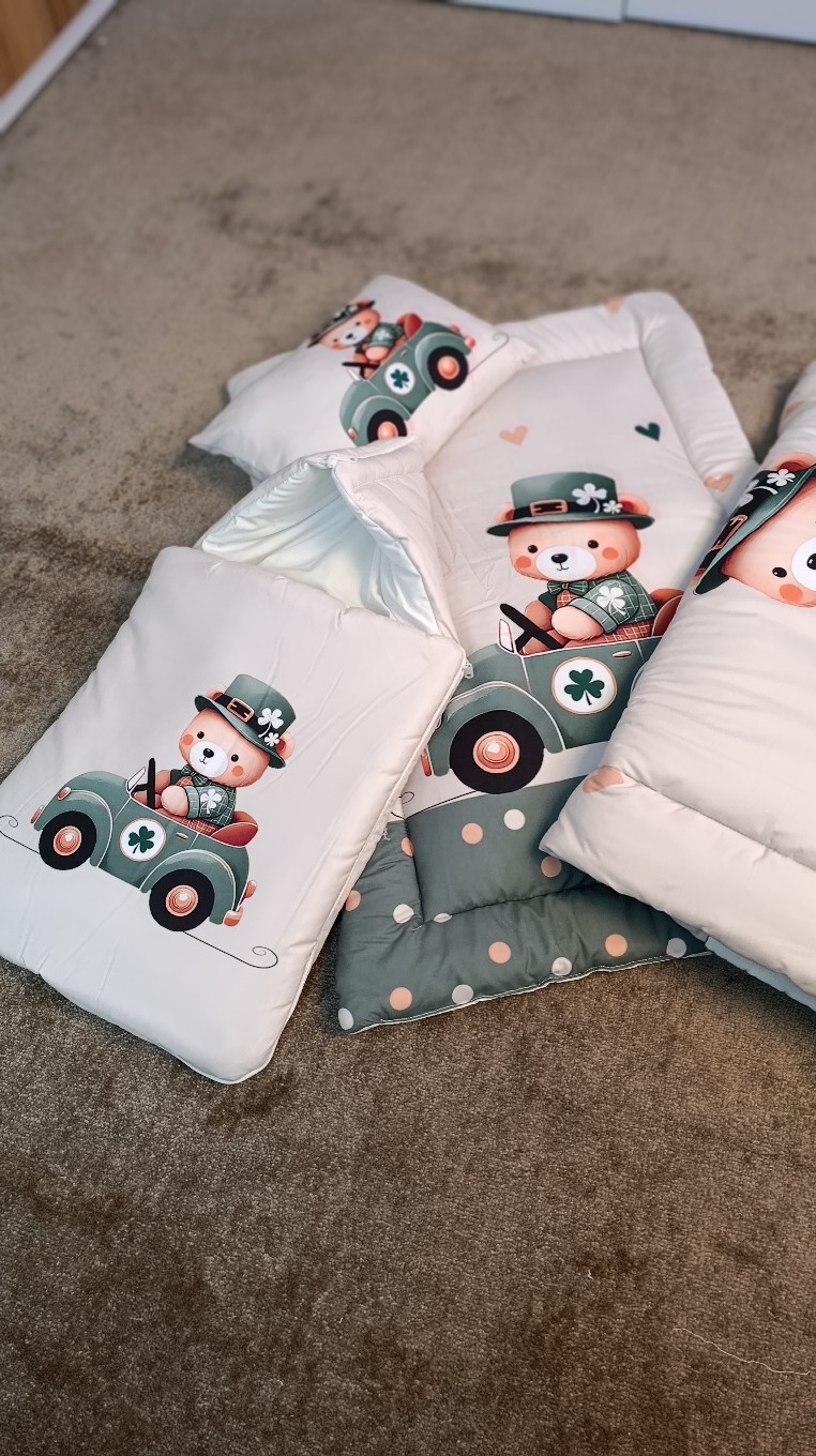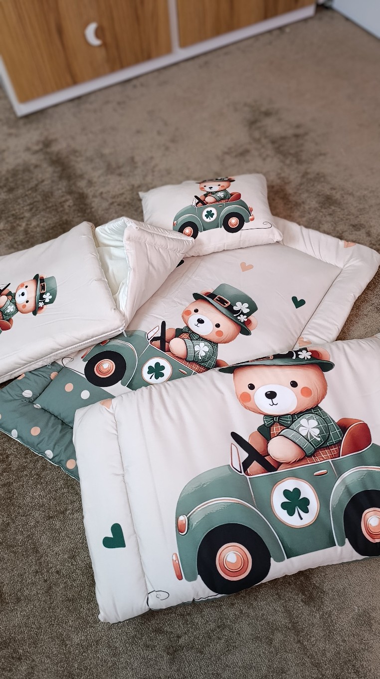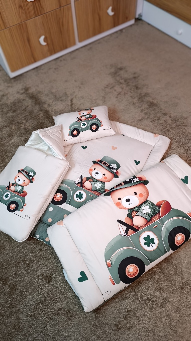 سرویس خواب نوزاد با قنداق فرنگی طرح خرس و ماشین