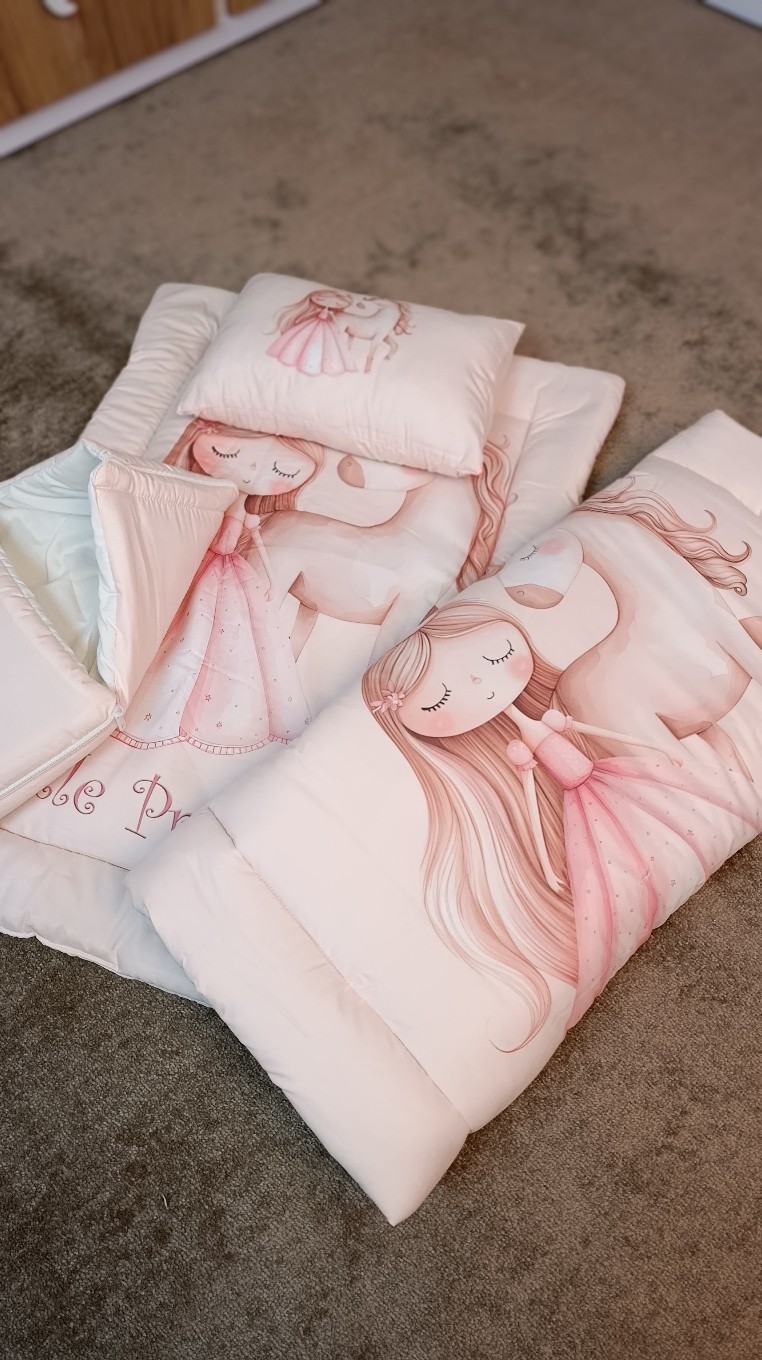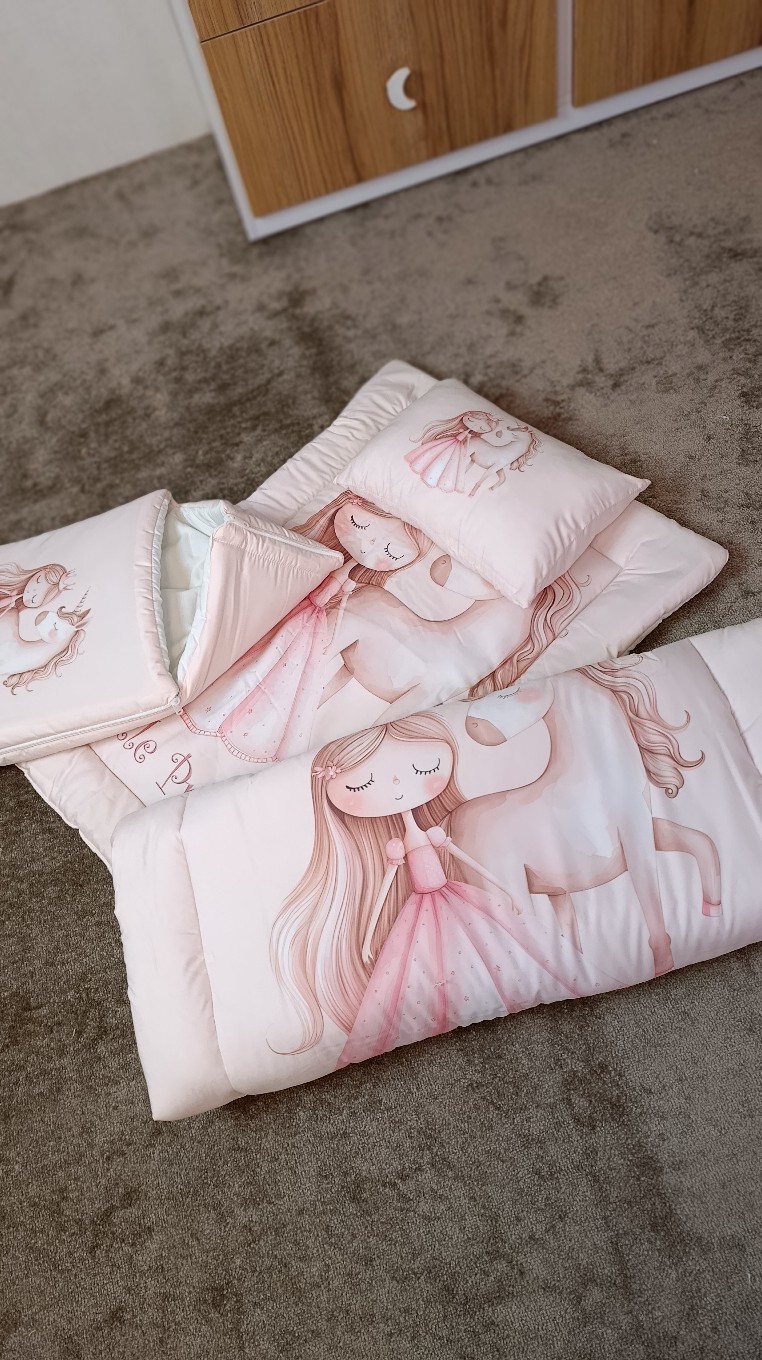 این سرویس خواب نوزادی بهگونهای طراحی شده که سایز تشک و لحاف آن تا حدود دو سال و نیم قابل استفاده باشد و در داخل سرویس، قنداق فرنگی هم قرار دارد. این ویژگی باعث میشود نسبت به بسیاری از نمونههای مشابه، کاربردیتر و مقرونبهصرفهتر باشد و مدت زمان بیشتری نیاز کودک را برطرف کند.