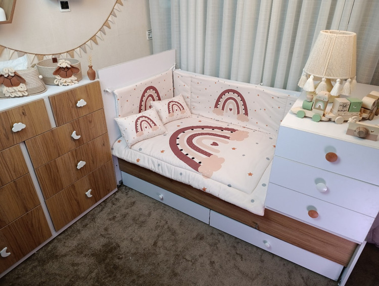 این سرویس با داشتن گاردهای محافظ، بالش و روبالشتی، لحاف و ملحفه، مجموعهای کامل برای راحتی، ایمنی و زیبایی تخت نوزاد فراهم میکند.