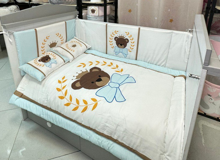 این سرویس با داشتن گاردهای محافظ، بالش و روبالشتی، لحاف و ملحفه، مجموعهای کامل برای راحتی، ایمنی و زیبایی تخت نوزاد فراهم میکند.